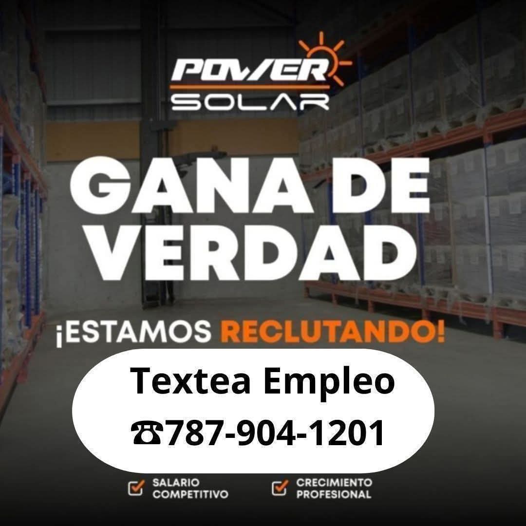 Estas listo para ser parte de la empresa líder de energía solar TEXTEA EMPLEO AL 787-904-1201