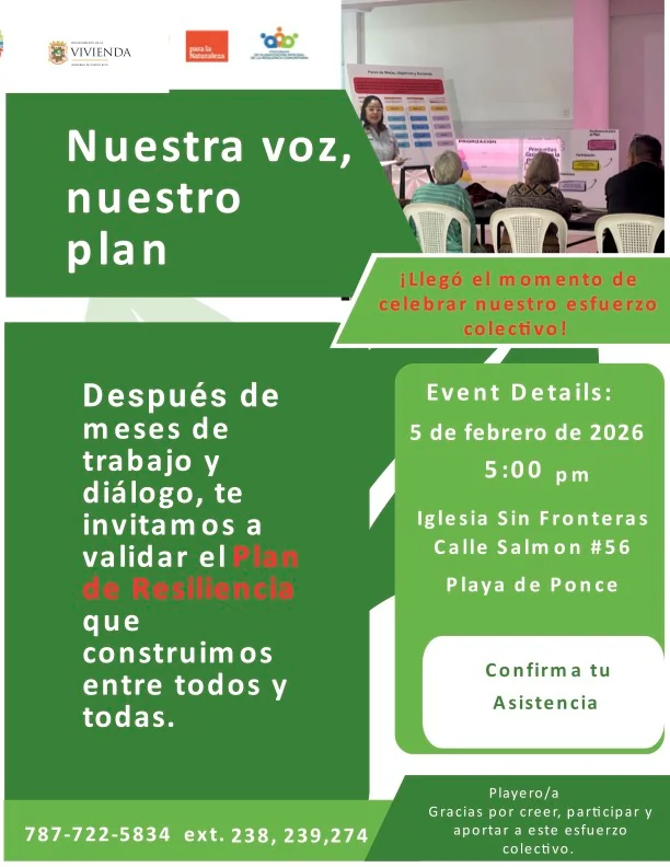 Reunión plan de resiliencia comunitaria 5 de febrero de 2026 de 5-8pm